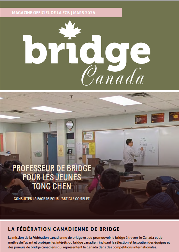 Le magazine Bridge Canada est maintenant disponible à toutes et à tous. Toutefois, si vous n’êtes pas membre de la FCB, nous vous invitons à y adhérer pour contribuer à la poursuite de la production du magazine et aux diverses activités de la FCB. Pour adhérer, cliquez sur le bouton rouge «Joindre la FCB» sur la page principale, ou allez au menu «Membres», et complétez le formulaire. Les frais d’adhésion sont seulement 25$ par année, 65$ pour 3 ans.